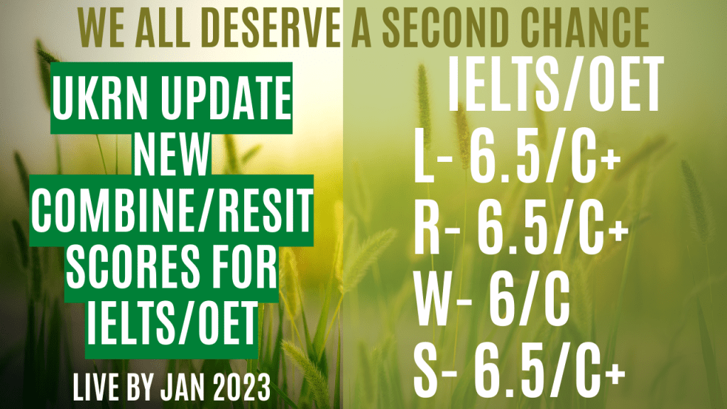 The move was initiated last year and was participated by people from different groups and unions gathered together to share their ideas and proposals on how to integrate the English proficiency and carry out the quality of care that we deliver to the patients. This was approved by the council on September 2022 and will be implemented by January 2023. There are 2 major changes happening. (1) The standardized minimum scores when combining/resitting the tests in IELTS and OET are now lowered half a bracket and extending the preparation for the resit from 6 months to 12 months. (2) The council will now accept supporting information from their respective employers of the English Language proficiency provided with evidence and with careful consideration before approval.