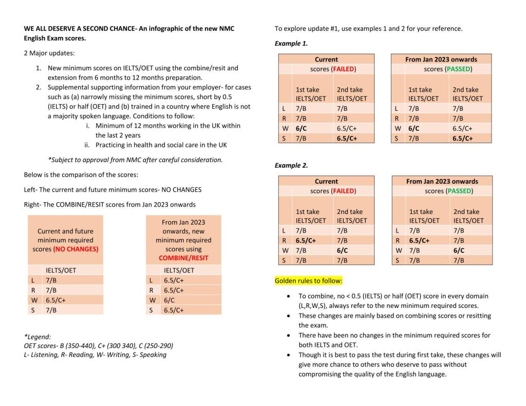A one page presentation of the NMC’s English Language changes this January 2023